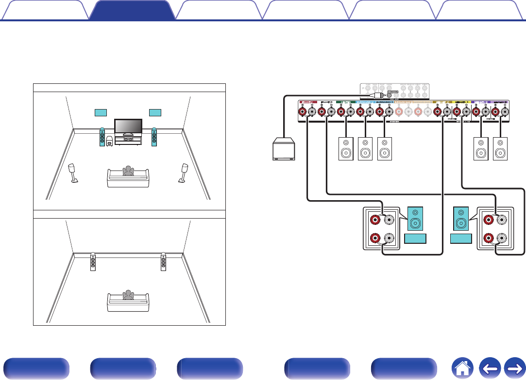 Dit type configuratie speelt 5.1-kanaals af in MAIN ZONE en 2-kanaals in ZONE2. U kunt de bi-amp aansluiting gebruiken voor de voorluidsprekers in