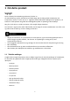 Indholdsfortegnelse 1 Om dette produkt ...................................................................................................................................3 2 Produkt og tilbehør ................................................................................................................................. 5 3 Udfoldning og sammenfoldning af el-løbehjulet....................................................................................6 4 Sådan samles enheden .......................