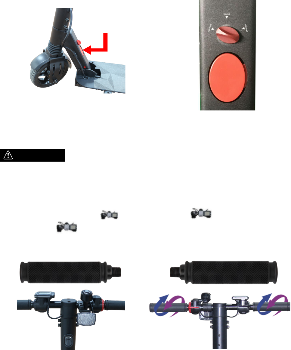 3) Før du tar i bruk den elektriske sparkesykkelen, må du vri på begge grepene, og sjekke at alle delene sitter godt på
