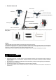 Spis treści 1. Produkt i akcesoria..................................................................................................... 3 2. Rozkładanie/składanie hulajnogi elektrycznej.............................................................4 3. Montaż rączek kierownicy...........................................................................................5 4. 5. Podłączanie ładowarki................................................................................................
