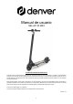 Manual de usuario SEL-65110 MK2 facebook.com/denverelectronics Antes de poner en funcionamiento este vehículo, lea todas las instrucciones para obtener un montaje y funcionamiento seguros. El manual de usuario puede guiarlo a través de las funciones y uso del scooter eléctrico. Antes de usar el scooter eléctrico, familiarícese con cómo operarlo de forma que pueda mantener el scooter eléctrico en las mejores condiciones posibles.