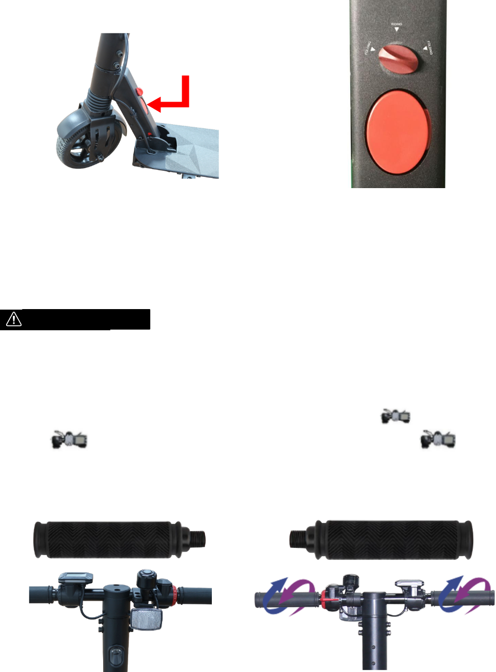 3) Drehen Sie vor der Benutzung des Elektrorollers die Handgriffe auf die Lenkstange und überprüfen Sie