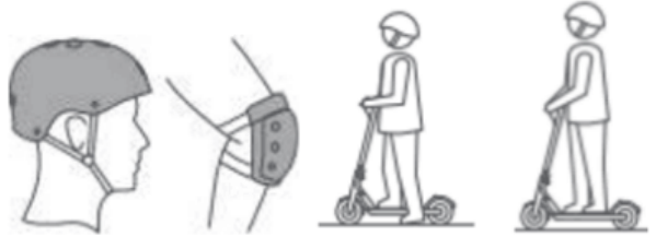 geeignete Schutzausrüstung tragen und wissen, wie man mit dem Elektroroller fährt.