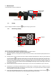 8. Brukskontroll Les instruksjonene nøye for en bedre bruk. Fart opp knapp Av/på-knapp Fart ned knapp Akselerator knapp Elektrisk bremseknapp 8.1 Knapp Det er tre knapper ved siden av skjermen, 8.2 Av/på, ▲ Fart opp og ▼ Fart ned. Kontroll og display Hastighet Batteri Gir KM Tid Enkel strekning Slå På: Langt trykk på Av/På-knappen inntil skjermen lyser. Slå Av: Langt trykk på Av/På-knappen inntil skjermen slukner, og systemet slås av. 1.