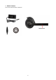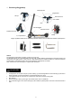 Innhold 1. Produkt og tilleggsutstyr............................................................................................... 3 2. Slå opp/slå sammen den elektriske sparkesykkelen.................................................... 4 3. Montering av styret....................................................................................................... 5 4. 5. Koble til laderen............................................................................................................