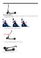Lijeva ručka Desna ručka 2 Rasklapanje i sklapanje romobila Rasklapanje romobila 1) Romobil postavite na kotače kao što je prikazano. 2) Sigurnosnu bravu gurnite prema gore te zatim povucite crvenu kopču za sklapanje u smjeru označenom strelicom na slici. 3) Polako podignite ručke. 4) Električni romobil je potpuno rasklopljen nakon što se začuje zvuk šipke kada 'sjedne' na mjesto.