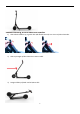 11 Sikker parkering af din elektriske scooter Når du har stoppet den elektriske scooter, skal du stige af og slå støttebenet ud med højre fod for at støtte den elektriske scooter. Støttebenet sidder på venstre side af den elektriske scooter under fodbrættet. Før du begynder at køre igen, skal du slå støttebenet op, så det sidder parallelt med fodbrættet.