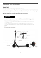 1 Product and Accessories Important! This electric scooter must be charged and stored in a safe way. For safety reason and protect battery life, never charge the electric scooter in temperatures below 5 °C or above 45 °C. Equally, always disconnect the electric scooter with the power cable once fully charged. Always use the supplied power adapter to charge the electric scooter. Make sure that all screws are properly tightened to avoid unsafe situations.