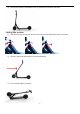 4) The electric scooter is unfolded as soon as you hear the rod clicks into place. Folding the scooter 1) Push the security lock up, then pull the red unlock clasp as indicated in the arrow below. 2) Press the front tube of the electric scooter downward. 3) The rod clicks audibly into place.