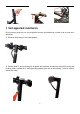 3 Het apparaat monteren De stuurstang moet op het voertuigframe worden geïnstalleerd voordat u de scooter kunt gebruiken. 1). Steek de stuurstang in het voertuigframe; 2). Pas de gaten in de stuurstang op de gaten van het frame en draai de schroeven stevig vast in deze gaten; herhaal dit in de tegenovergestelde zijde van de stuurstang; u hebt in totaal 4 schroeven nodig.