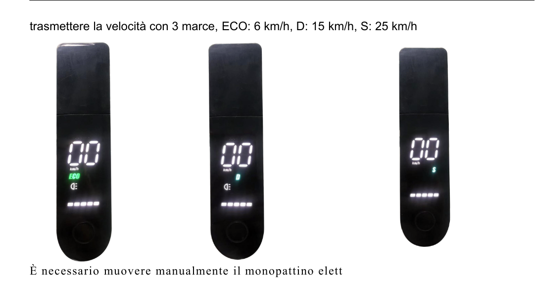 trasmettere la velocità con 3 marce, ECO: 6 km/h, D: 15 km/h, S: 25 km/h