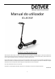 Manual do utilizador SEL-85350F facebook.com/denverelectronics Antes de operar este veículo, ler todas as instruções para uma montagem e operação seguras. O manual do utilizador irá orientá-lo acerca das funções e da utilização da Trotinete Elétrica. Antes de usar esta trotinete elétrica, deve familiarizar-se com a respetiva utilização, para que a possa manter no melhor estado possível.