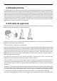 9.1 Lâmpada LED à frente e atrás Esta trotinete elétrica está equipada com lâmpadas LED à frente e atrás. Premir o botão Ligar para ligar/desligar as luzes LED à frente e atrás e a luz LED atrás é uma luz constante, a luz LED da frente é branca e a luz LED atrás é vermelha. Premir o travão elétrico/disco para que a lus LED atrás fique a piscar.