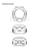 1. AVAA/SULJE 2. VIRTA/FUN ⚫ Valmiustila: Kytket radion päälle painamalla lyhyesti; kytket radion pois päältä pitämällä painettuna. Oletusarvoisesti radio käynnistyy DAB-tilassa. ⚫ Käyttötila: Vaihda käyttötilaa painamalla lyhyesti DAB/FM/CD/USB/AUX. 3. EDELLINEN/SEURAAVA ⚫ FM-tilassa: Painamalla lyhyesti haet radiotaajuuksia eteenpäin tai taaksepäin. Pitämällä painettuna haet FM-taajuuksia eteenpäin tai taaksepäin.