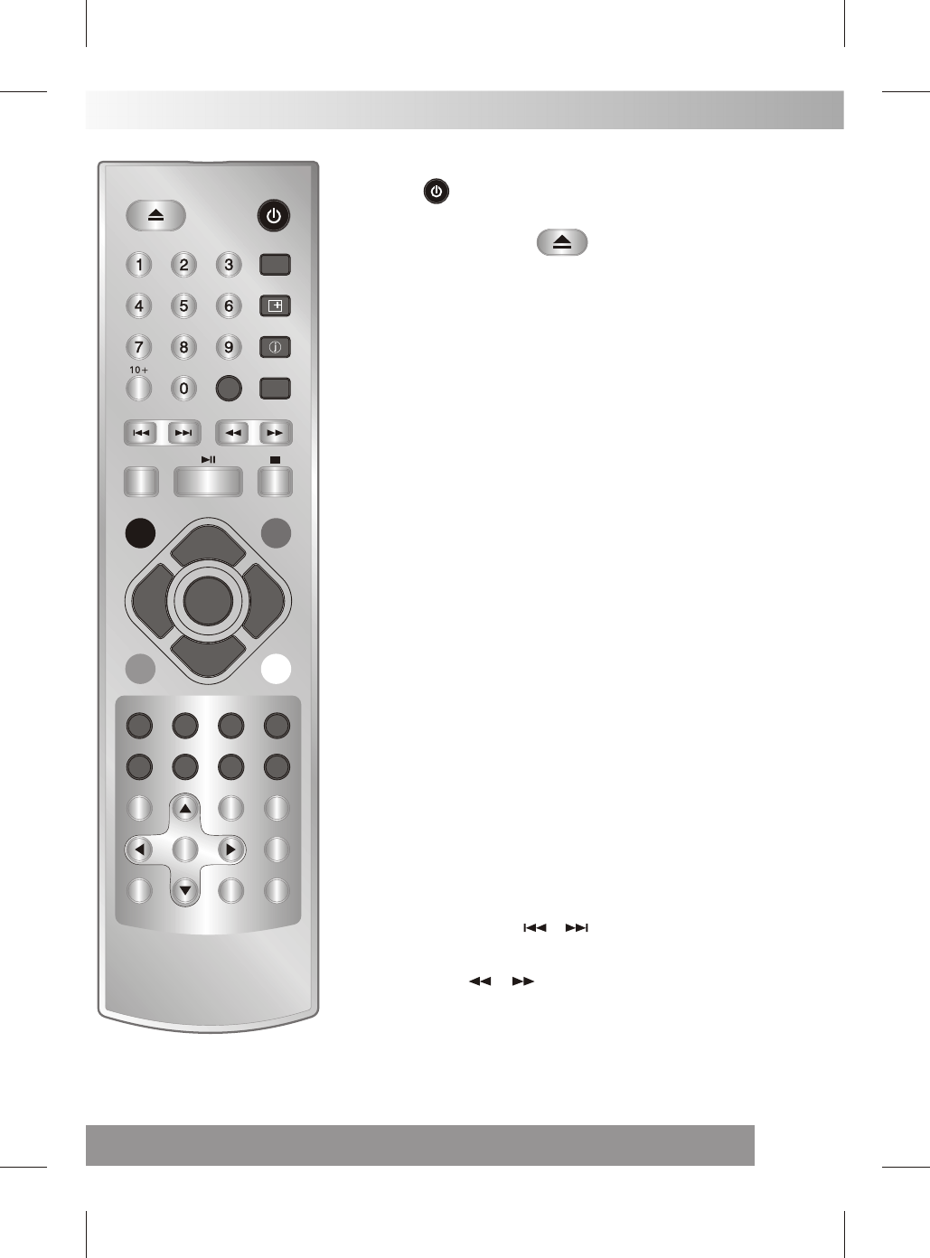 Press these button to go to the previous/next chapter(DVD).