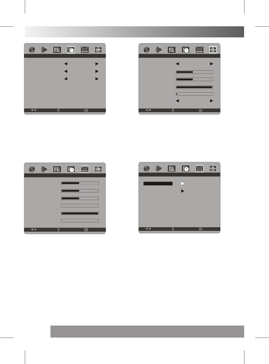 H-POSITION/V-POSITION: Press the VOL+/- buttons to adjust the picture Horizontal and Vertical position.