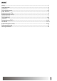 INHALT Inhalt-------------------------------------------------------------------------------------------------------------1 Spezifikationen------------------------------------------------------------------------------------------------2 Installation------------------------------------------------------------------------------------------------------3 Sicherheitshinweise--------------------------------------------------------------------------------------------4-5 Erste Schritte------------------------------