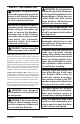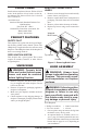 TROUBLESHOOTING Continued OBSERVED PROBLEM POSSIBLE CAUSE REMEDY Slight smoke or odor during initial operation 1. Residues from manufacturing processes and log curing 2. Not enough air 1. Problem will stop after a few hours of operation 2. Check burner for dirt and debris. If found, clean burner (see Cleaning and Maintenance, page 26) 3. Replace gas regulator 3. Gas regulator defective Fireplace produces a whistling noise when burner is lit 1.