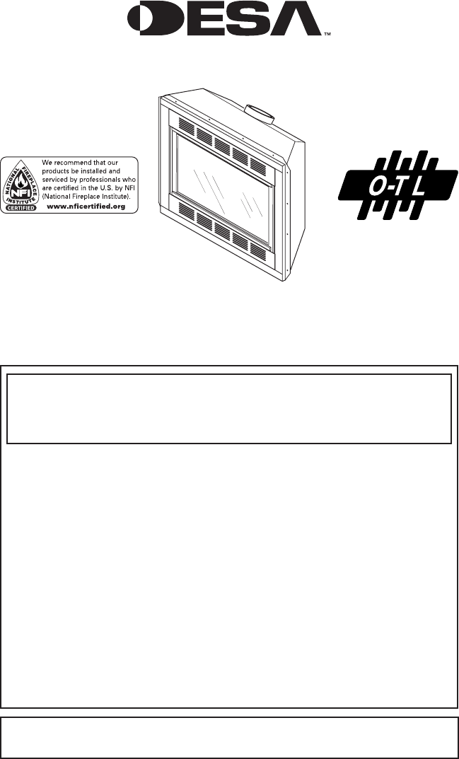 Accessories NOTICE: All accessories may not be available for all fireplace models. Purchase these fireplace accessories from your local retailer. If they can not supply these accessories, call DESA’s Sales Department at 1-866-672-6040. for information. You can also write to the address listed on the back page of this manual. Brick Liner (Not Shown) BL32D - Refractory Brick Liner Kit This brick liner adds a touch of style to your directvent fireplace.