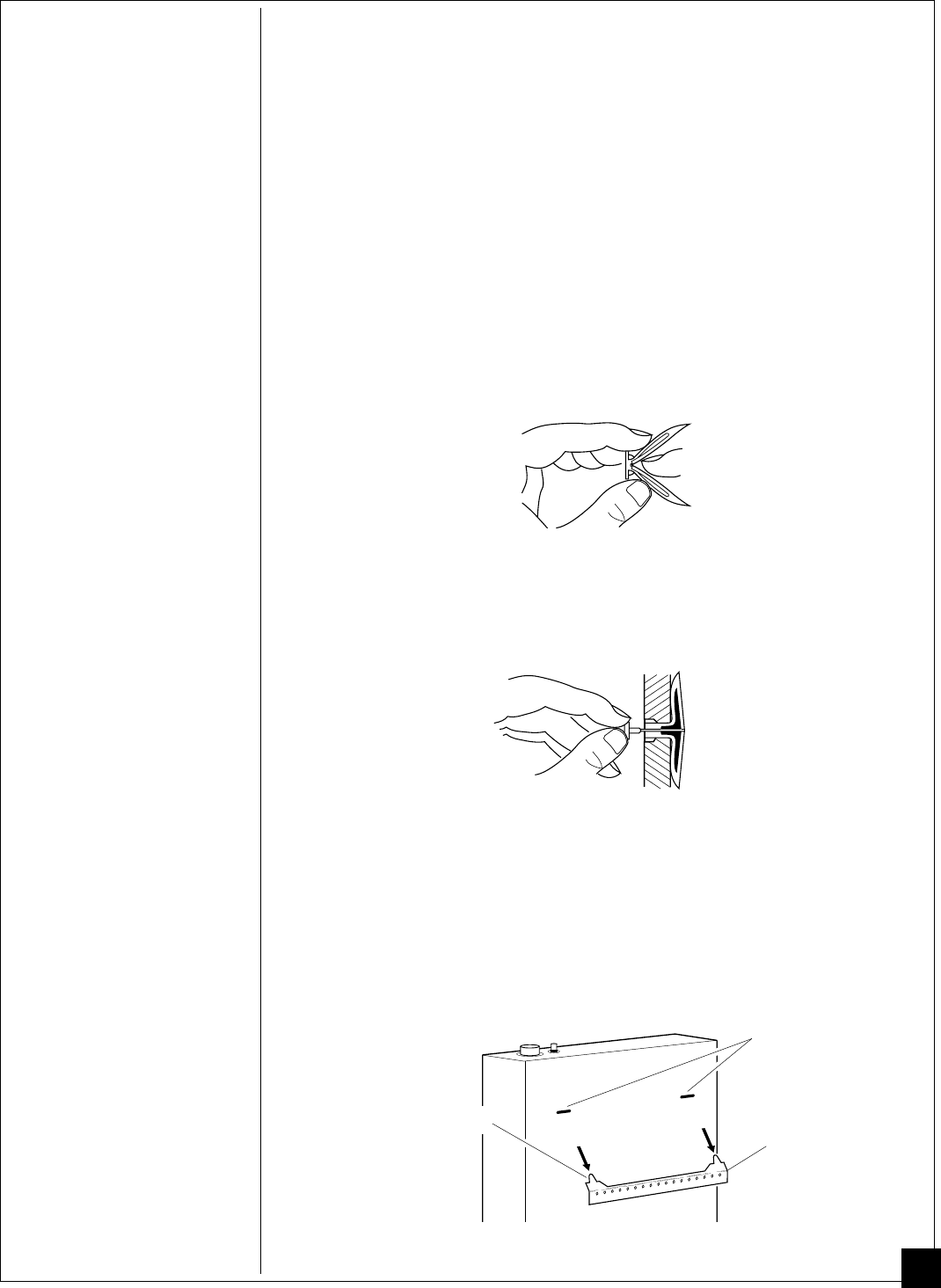 1. Drill holes at marked locations using 5/16" drill bit. For solid walls (concrete or
