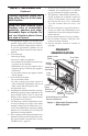 Fireplace Installation 3. Close glass door, lock door latches, replace screen and close louvers (see Removing Glass Door, steps 5 through 7). Continued 4. Remount the new frame at the hinge with five new screws before closing door. This will ensure seating of the gasket. 5. Close glass door frame. Lock latches by placing the bar under the tab on door and pushing down and back on latch (see Figure 37, page 24). 6. Replace screen/rod assembly by reversing step 1. 7.