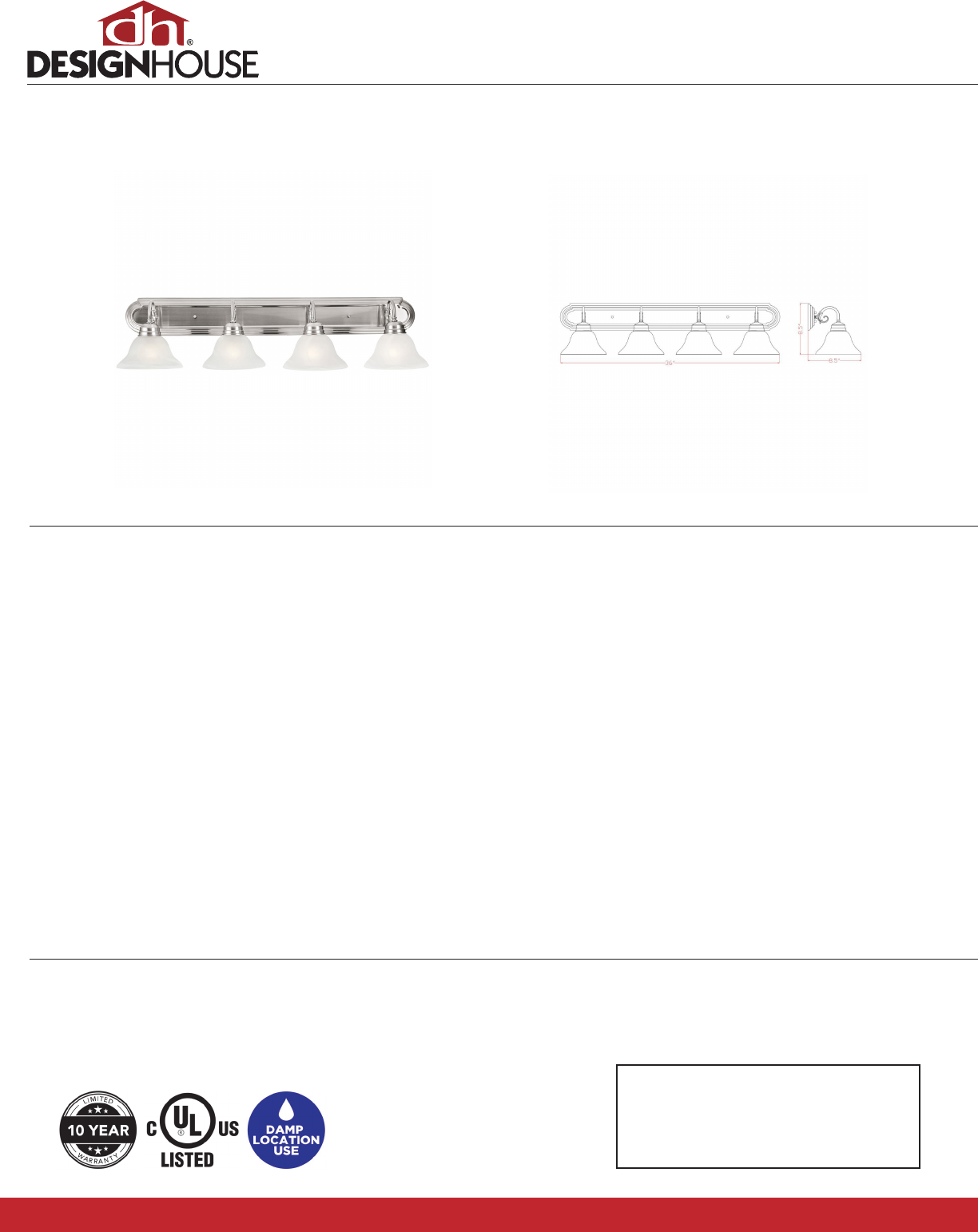 Design House reserves the right to make changes in materials, specications & models at any time. Design House also reserves the right to discontinue product without notice or obligation.