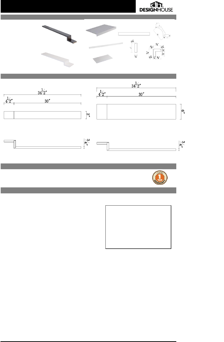 Design House reserves the right to make changes in materials, specifications & models at any time. Design House also reserves the right to discontinue product without notice or obligation.