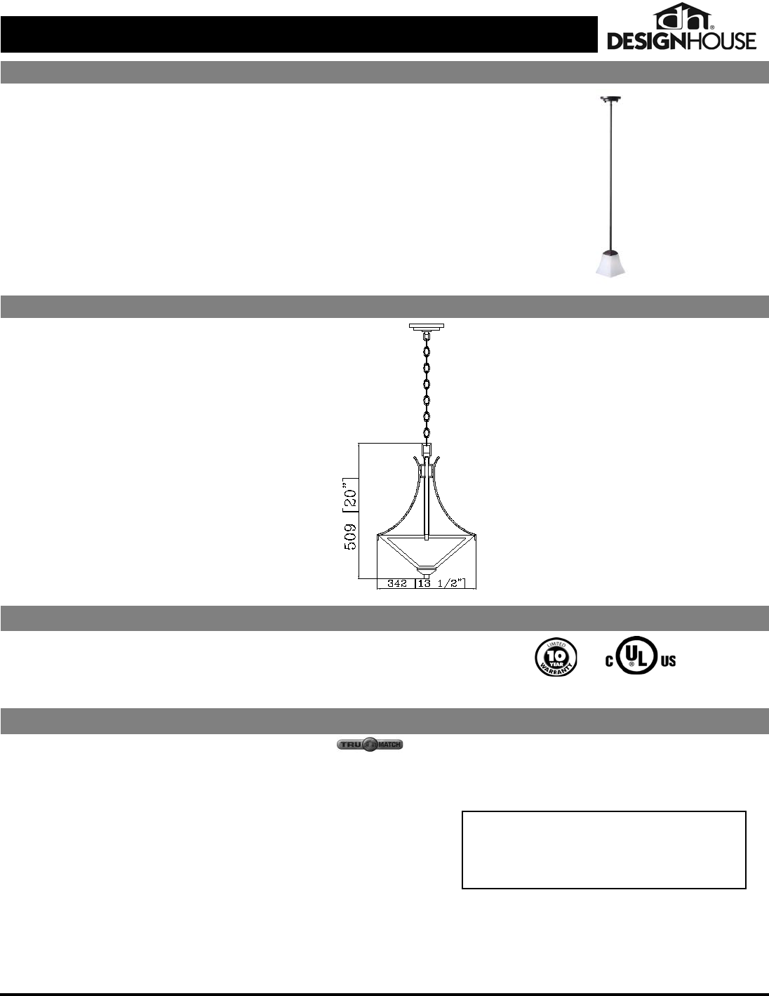Design House reserves the right to make changes in materials, specifications & models at any time. Design House also reserves the right to discontinue product without notice or obligation.