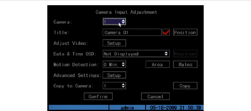 1. Click Camera on the main menu to display the Camera Configuration screen.