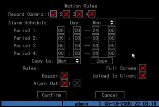 schedule. On the Motion Detection Alarm Rules screen, select the day of the week