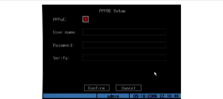 enables PPPoE function. Enter the PPPoE username, password and verify