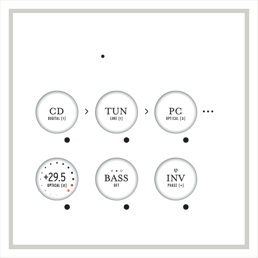 L’écran affiche par défaut le volume d’écoute (de -97,5dB à +30dB) ainsi que la source active.