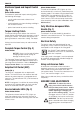 ENGLISH Setting the Electronic Speed and Impact Control Dial (fig. 1, 3) D25601, D25602, D25603 Turn the dial (g) to the desired level. Turn the dial upwards for higher speed and downwards for lower speed. The required setting is a matter of experience. E.g.: – when chiselling or drilling in soft, brittle materials or when minimum break-out is required, set the dial to a low setting; – when breaking or drilling in harder materials, set the dial to a high setting. Setting the Torque Control Switch (fig.