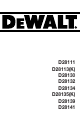 ITALIANO Dichiarazione CE di conformità D28111/D28113(K)/D28130/D28132/D28134/D28135(K)/D28139/D28141 DEWALT dichiara che questi elettroutensili sono stati costruiti in conformità alle norme: 98/37/CE, 89/336/CEE, 73/23/CEE, 86/188/CEE, EN 50144, EN 55014-2, EN 55014-1, EN 61000-3-2 & EN 61000-3-3. Per ulteriori informazioni, contattare DEWALT all’indirizzo qui sotto o consultare il retro del presente manuale.