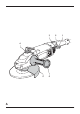 FRANÇAIS ● Serrez la bride (14) avec la clé à ergots fournie. ● Relâchez le bouton de blocage de l'arbre. ● Pour démonter le disque, desserrez la bride (14) avec la clé à ergots. @ N'utilisez pas de disque endommagé. Montage d'une brosse métallique ● Vissez la brosse métallique directement sur l'arbre, sans utiliser le flasque ni l'écrou. Montage de la poignée latérale (fig. D) ● Vissez la poignée latérale (6) dans un des trous (15) à droite et à gauche du boîtier d'engrenage. Tenue de l'outil (fig.