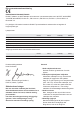 NEDERLANDS 19 Onderhoud de machine met zorg Houd de machine schoon om beter en veiliger te kunnen werken. Houdt u aan de instructies met betrekking tot het onderhoud en het vervangen van accessoires. Houd de handgrepen en schakelaars droog en vrij van olie en vet. 20 Reparaties Deze machine voldoet aan alle geldende veiligh eidsvoorschriften.