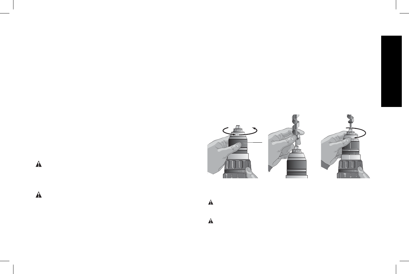 handed operation of the chuck. To insert a drill bit or other accessory,