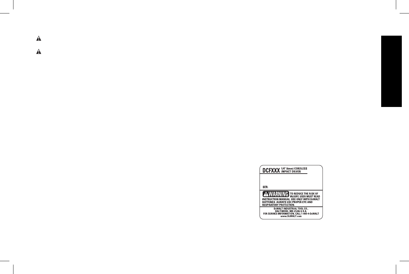 WARNING: To reduce the risk of injury, use only DEWALT impact-
