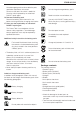 ENGLISH • • • • Do not cut materials that are thicker than the maximum cutting depth. Use sharp saw blades only. Damaged or bent saw blades must be removed immediately. Never run your tool without a saw blade. For optimal results, move the tool smoothly and constantly over the workpiece. Do not exert lateral pressure on the saw blade. Keep the shoe flat on the workpiece. When sawing curves, circles or other round shapes, push the tool gently forward.