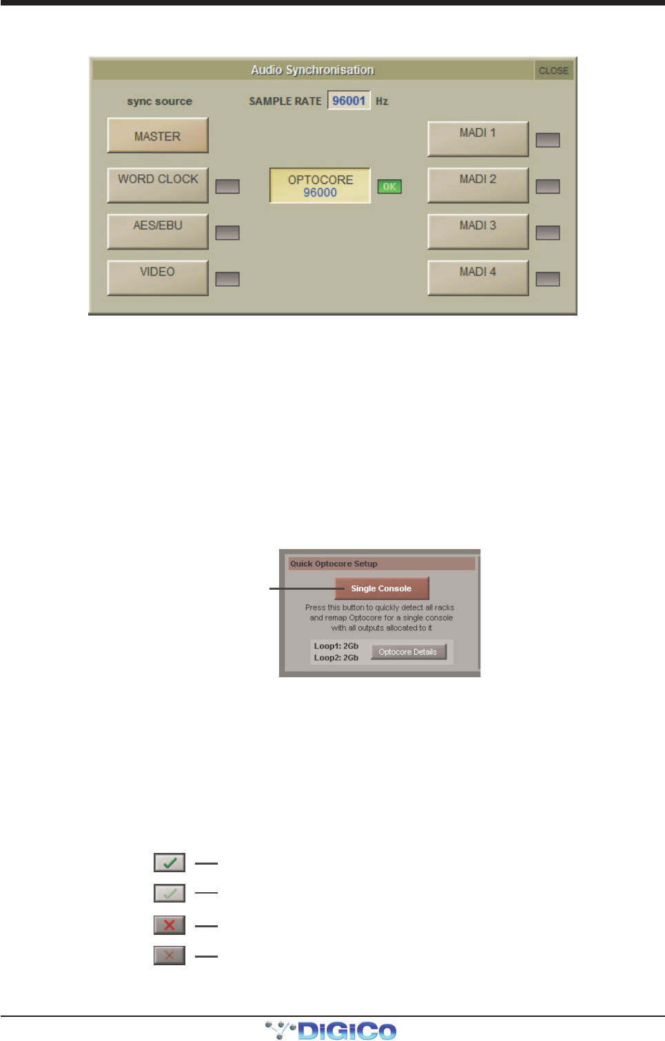 ports and conform all connected SD or D Racks. A green OK should appear next to each port along with the rack type and it’s Optocore