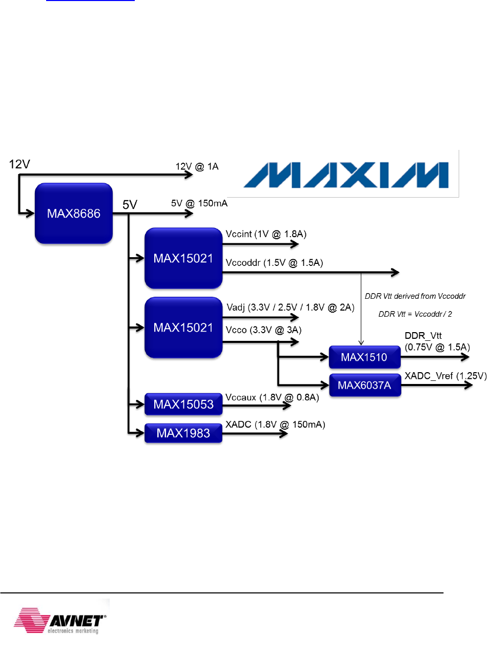 The following Maxim power solution provides the power rails of the ZedBoard.