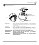 1 INTRODUCTION Main Part Description Mounting Hook Mounting Screw Hole Main Connector Sensor I/O Port (I/O Model) DIP Switch Dome Cover z Dome Cover Do not detach the protection vinyl from the dome cover before finishing all the installation process to protect the dome cover from scratches or dust. z DIP Switch Used to set up camera IDs and protocols. z Mounting Hook Used to assemble the main body with wall mount bracket or ceiling mount bracket.