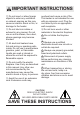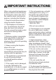 IMPORTANT INSTRUCTIONS ⑮ Do not insert or allow foreign objects to enter any ventilation or exhaust opening as this may cause an electric shock or fire, or damage to the heater. overheat and cause a risk of fire. This heater is not intended for use with an extension cord. Plug the cord directly into an appropriate wall receptacle. ⑯ Do not block air intake or exhaust in any manner. Do not use on soft surfaces, like a bed, where openings may become blocked.