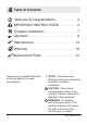 Table of Contents Welcome & Congratulations. . . . . . . . . . . . 3 IMPORTANT INSTRUCTIONS. . . . . . . . . . 4 Fireplace Installation . . . . . . . . . . . . . . . . . 7 Operation. . . . . . . . . . . . . . . . . . . . . . . . . . . 9 Maintenance. . . . . . . . . . . . . . . . . . . . . . . 14 Warranty. . . . . . . . . . . . . . . . . . . . . . . . . . 18 Replacement Parts. . . . . . . . . . . . . . . . . . . 21 Always use a qualified technician or service agency to repair this fireplace.