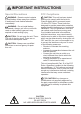 Table of Contents Welcome.............................................................3 IMPORTANT INSTRUCTIONS........................... 4 Installation..........................................................6 Operation............................................................9 Maintenance..................................................... 11 Warranty...........................................................12 Technical Support.............................................