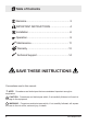 Table of Contents Welcome...............................................................3 IMPORTANT INSTRUCTIONS............................. 4 Installation............................................................. 6 Operation...............................................................9 Maintenance....................................................... 11 Warranty............................................................12 Technical Support...............................................