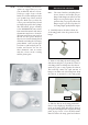 Using a modeling knife, cut one length of fuel line 20” long. Connect one line to the vent tube and one line to the fuel pick up tube on the stopper. See picture bellow. Blow through the tubes to make sure the lines have not become kinked during installation. Vent tube. Fuel pick up tube. Fuel fill tube. Fuel tank. INSTALLING THE SWITCH. 1) Install the switch into the precut hole in the fuselage side. Use the two screws provided with the switch to secure it in place.