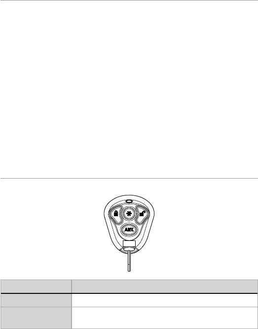 Command buttons (4) Used to perform arming/locking, disarming/unlocking, auxil-