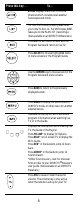 FEATURES AND FUNCTIONS Key Charts Press this key… To… Slide the MODE switch to the DIRECTV, AV1, AV2 or TV positions to select the component you want to control. A green LED under each switch position indicates the component being controlled. Press TV INPUT to select the available inputs on your TV. NOTE: Additional setup is required to activate the TV INPUT key. (See instructions on page 9.) Press FORMAT to cycle through the resolution and screen formats.