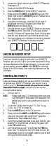 2. 3. 4. 5. 6. 7. 8. Locate the 5-digit code for your DIRECTV® Receiver. (See page 13.) Power on the DIRECTV Receiver. Slide the MODE switch to the DIRECTV position. Press and hold the MUTE and SELECT keys until the green light under the DIRECTV position flashes twice, then release both keys. Using the number keys, enter the 5-digit code. If performed correctly, the green light under the DIRECTV position flashes twice. Aim the remote at your DIRECTV Receiver and press the PWR key once.